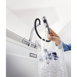 Dieses Modell ist ideal für alle, die Komfort, Platzersparnis und eine hygienische Lösung für gefiltertes Wasser mit dem Mehrwert einer ausziehbaren Brause suchen. Blanco Fontas-S II vereint modernes Design, Praktikabilität und die Qualität der Marke BLANCO in einer eleganten Lösung.