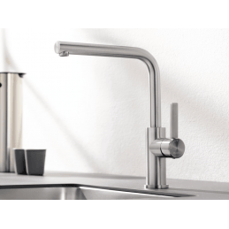 Blanco Lanora ist eine moderne Einhebel-Küchenarmatur, die durch hohe Funktionalität, präzise Verarbeitung und zeitloses Design besticht. Sie besteht aus hochwertigem Edelstahl und ihre charakteristische Körperform in Form des Buchstabens L sorgt für erhöhten Komfort bei der täglichen Handhabung in der Küche.