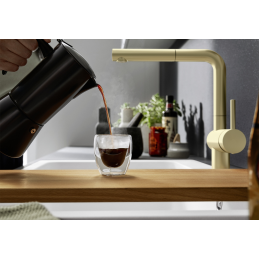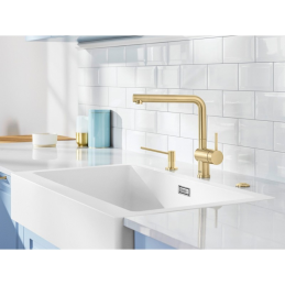 Blanco Linus ist eine stilvolle Küchenarmatur mit minimalistischem und zeitlosem Design, die sich sowohl in moderne als auch klassische Küchen natürlich einfügt. Sie zeichnet sich durch klare Linien, einfache Bedienung und sehr pflegeleichte Wartung aus – die Oberfläche lässt sich leicht reinigen und behält ihr elegantes Aussehen dauerhaft bei.