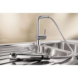 Ausziehbare Brause – praktisch beim Abspülen von Lebensmitteln und Geschirr.