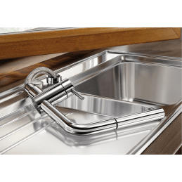 Das Modell Linus-S-F ist die ideale Wahl für Küchen mit Spüle unter dem Fenster, wo eine klappbare Lösung ohne Kompromisse bei Design und Komfort erforderlich ist. Dank ausziehbarer Brause, stabiler Konstruktion und zertifizierter Qualität der Marke BLANCO bietet sie eine zuverlässige und elegante Lösung für den täglichen Gebrauch.