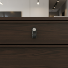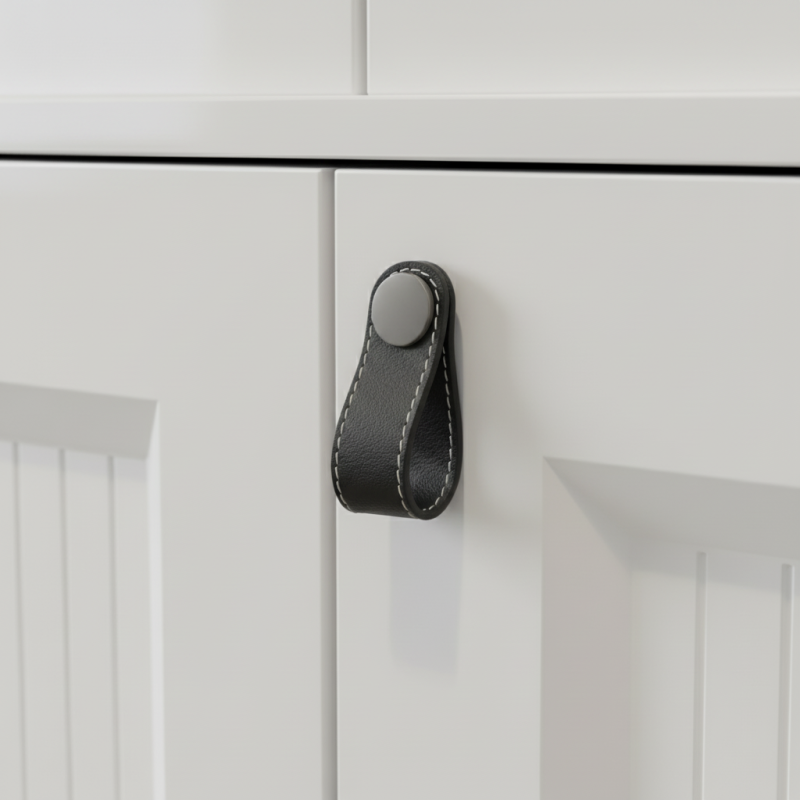 Der elegante Lederknopf CASE ist die ideale Wahl für moderne sowie klassische Innenräume. Er kombiniert echtes Leder mit einem Metallelement und dekorativen Nähten, die dem Griff einen handwerklichen Charakter und eine hohe Widerstandsfähigkeit verleihen. Er sorgt für einen weichen, angenehmen Griff und wirkt zugleich ästhetisch und zeitlos.