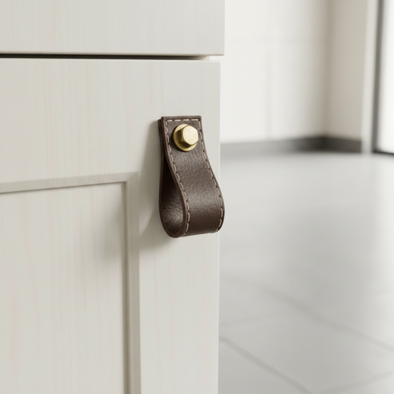 Der Lederknopf SAMSONITE in brauner Ausführung ist ein elegantes und zugleich markantes Accessoire, das Möbeln einen natürlichen und handwerklichen Charakter verleiht. Die Kombination aus hochwertigem braunem Leder und einer massiven Schraube im Antikmessing-Look wirkt authentisch und ist ideal für industrielle, rustikale sowie moderne Interieurs.