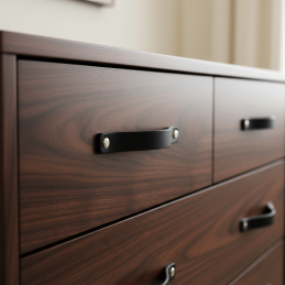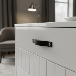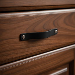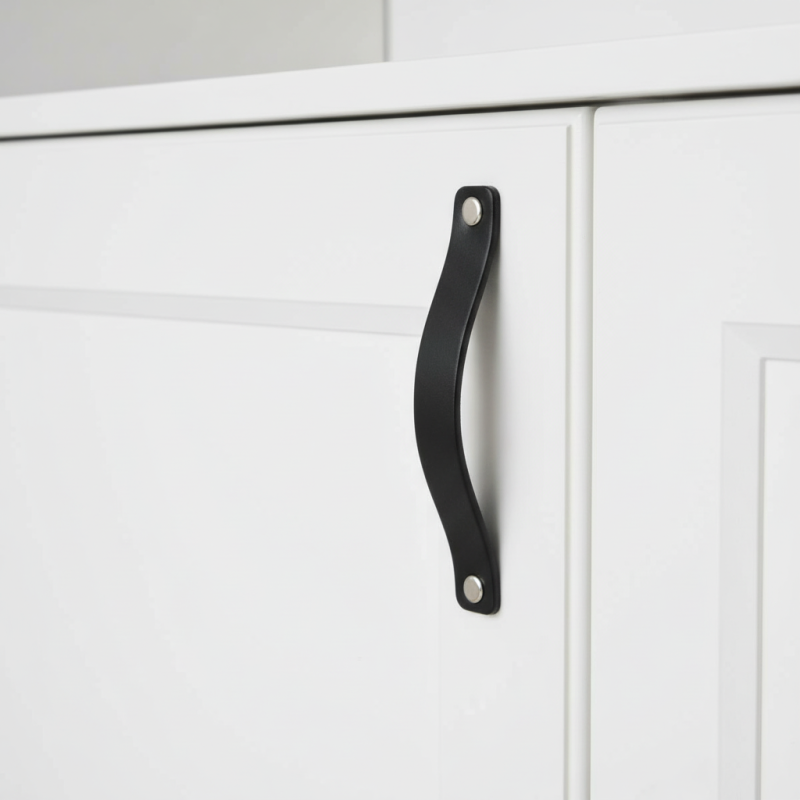 Exklusive Griffleiste aus echtem Rindsleder, in elegantem schwarzen Design. Im Gegensatz zum Modell DOLCE OVAL hat diese Version gerade Enden, was ihr ein moderneres und saubereres Aussehen verleiht. Dank ihrer Flexibilität ist sie sehr vielseitig und kann sowohl als klassischer Griff als auch als Lederknopf (bei Verwendung nur eines Griffs) eingesetzt werden.