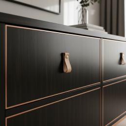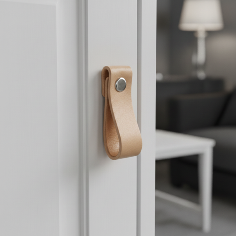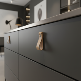 Eleganter Ledergriff DOLCE Mini aus Naturleder ist ein stilvolles Accessoire für moderne und klassische Möbel. Der weiche Lederstreifen wirkt minimalistisch, fühlt sich angenehm an und schafft einen natürlichen, warmen Akzent im Interieur. Dank seiner Form ist er ideal für Schubladen, Türen oder kleinere Möbelstücke.