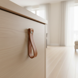Der Ledergriff DOLCE Maxi in brauner Ausführung bringt einen warmen, natürlichen Akzent und ein elegantes Design in den Innenraum. Dank der größeren Länge wirkt er markanter als die Mini-Version und eignet sich für Schränke, Kommoden, Schubladen oder ergänzende Möbelstücke. Weiches Echtleder verleiht den Möbeln einen einzigartigen Charakter und eine angenehme Haptik.