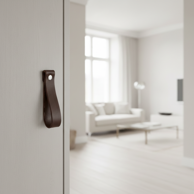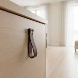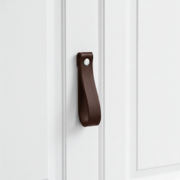 Der Ledergriff DOLCE Maxi in dunkelbrauner Ausführung wirkt elegant, natürlich und zeitlos. Echtes Leder verleiht den Möbeln einen luxuriösen, warmen Akzent und durch die größere Länge wirkt der Griff markanter, was ihn ideal für Schränke, Kommoden oder größere Schubladen macht. Der dunkelbraune Farbton harmoniert wunderschön mit Holz, Naturmaterialien und modernen Oberflächen.