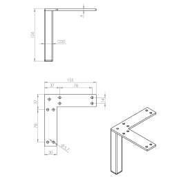 • Abmessung des oberen Sockels: 126 × 126 mm - fest mit dem Möbel verbunden