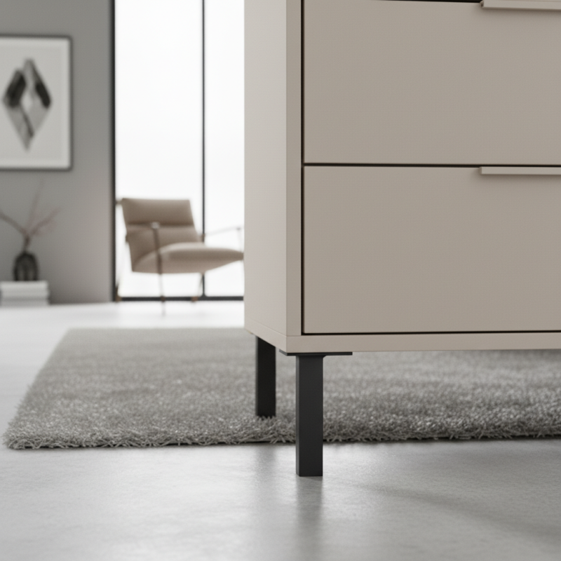 LOGAN ist ein modernes Design-Möbelbein, das für den Einsatz unter Kommoden, Schränken oder anderen Möbeln konzipiert ist. Das minimalistische, quadratische Profil in Kombination mit einem klaren Design verleiht den Möbeln ein elegantes Aussehen und Stabilität.