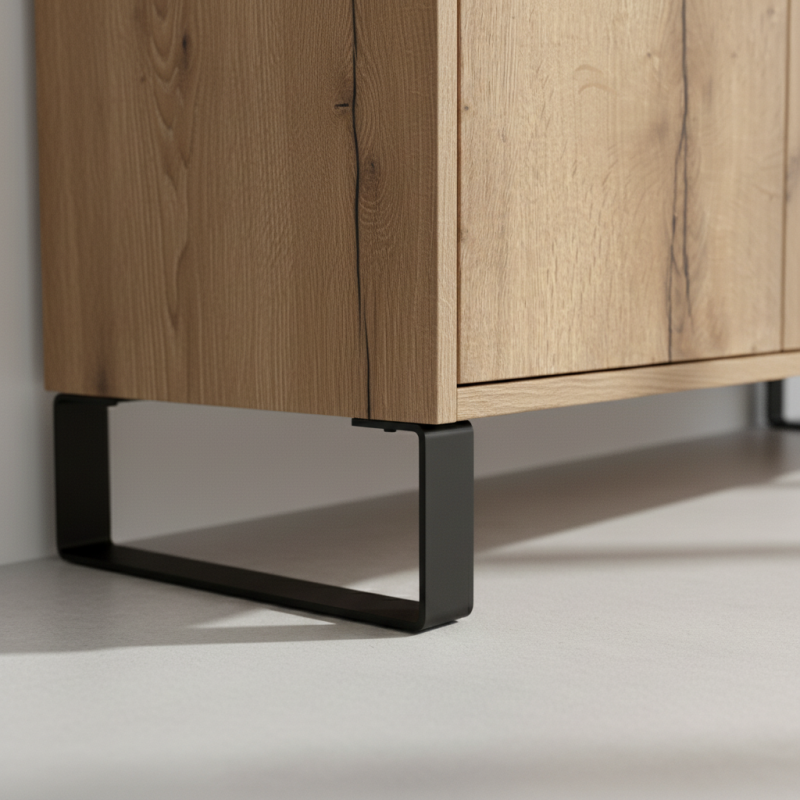 Möbelfuß THOMAS in elegantem schwarzen Matt Design ist die ideale Lösung für moderne Kommoden, Schränke, TV-Tische oder Bänke. Dank der minimalistischen Form in umgekehrter „U“-Form wirkt er modern, sauber und verleiht dem Möbel gleichzeitig die nötige Stabilität.