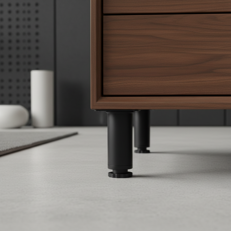 Geben Sie Ihren Möbeln eine moderne und stabile Basis mit dem eleganten Metallfuß ARTURO. Seine klare, runde Form mit einem Durchmesser von 40 mm passt perfekt zu Kommoden, Schränken, Tischen und Kücheneinrichtungen. Dank der verschiedenen verfügbaren Höhen und der Möglichkeit der Feinjustierung passt er sich perfekt an verschiedene Arten von Innenräumen und Bodenunebenheiten an.