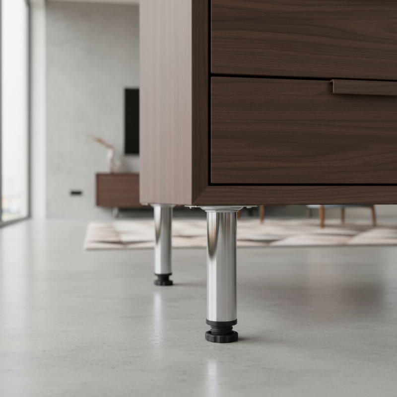 Geben Sie Ihren Möbeln eine moderne und stabile Basis mit dem eleganten Metallfuß ARTURO. Seine klare, runde Form mit einem Durchmesser von 40 mm passt perfekt zu Kommoden, Schränken, Tischen und Kücheneinrichtungen. Dank der verschiedenen verfügbaren Höhen und der Möglichkeit der Feinjustierung passt er sich perfekt an verschiedene Arten von Innenräumen und Bodenunebenheiten an.