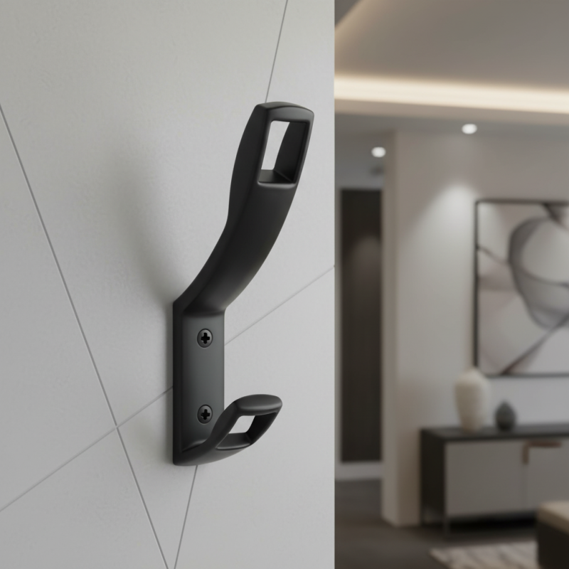 Der doppelte Haken ermöglicht das bequeme Aufhängen von Mänteln, Jacken, Taschen oder Accessoires und ist geeignet für Flure, Garderoben, Badezimmer sowie Büroräume. Die stabile Metallkonstruktion sorgt für Zuverlässigkeit und eine lange Lebensdauer bei täglichem Gebrauch.