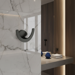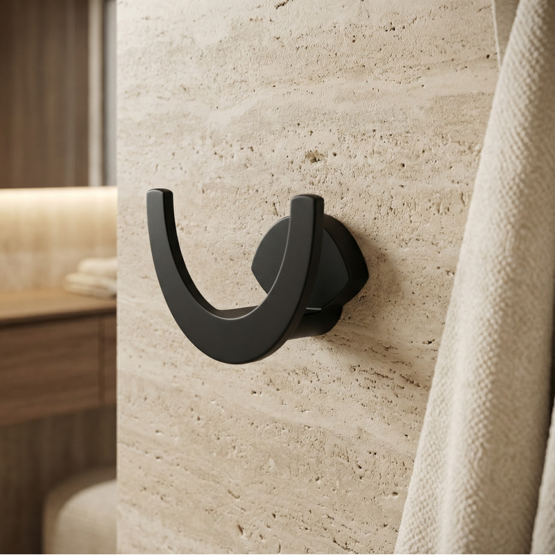 Der Haken TAURO in schwarzer matter Ausführung ist die ideale Wahl für Kunden, die eine Kombination aus minimalistischem Design, Funktionalität und hochwertiger Verarbeitung suchen.
