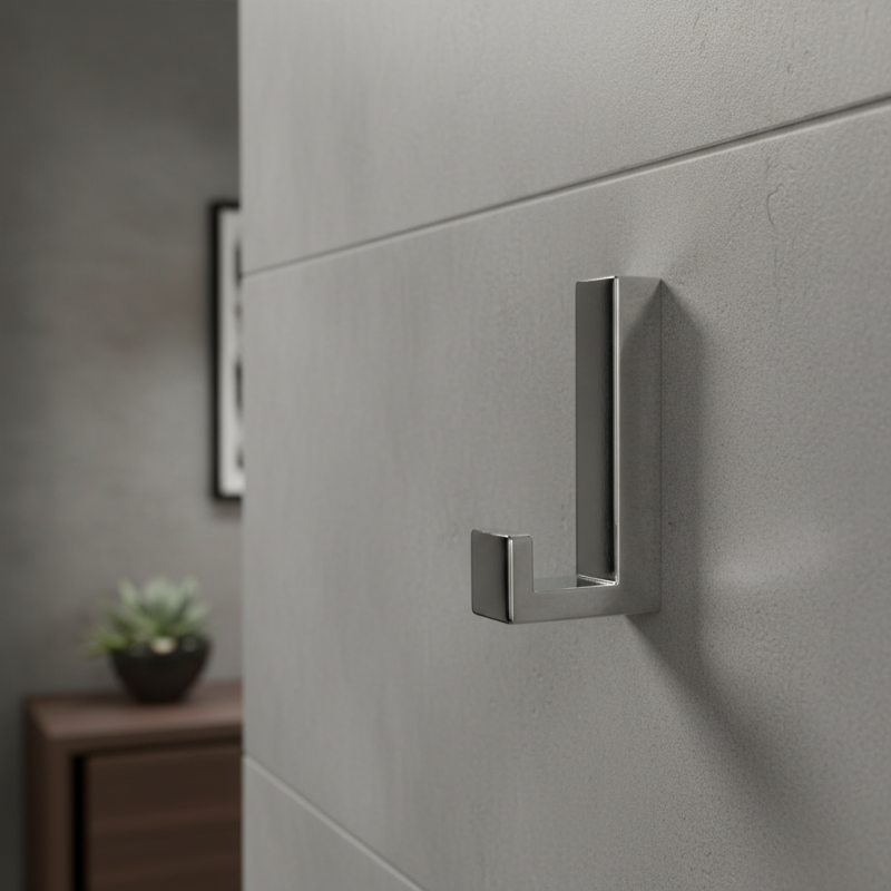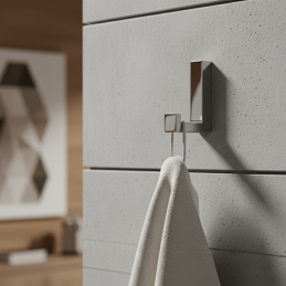 Die Montage erfolgt einfach und sauber – zuerst wird die Montageplatte an der Wand oder am Möbelstück befestigt und anschließend der eigentliche Haken darauf gesetzt, der von unten mit einer Schraube fixiert wird. Dank dieser Lösung bleiben alle Schrauben verborgen und das Endergebnis ist ein perfekt sauberes Erscheinungsbild.
