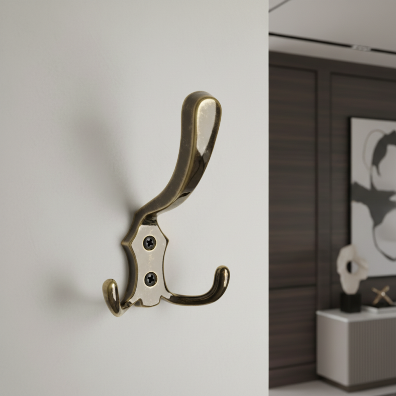 Wandaufhänger für Möbel aus Metall mit Frontbefestigung. Kann mit anderen Größen von Aufhängern im gleichen Design kombiniert werden.