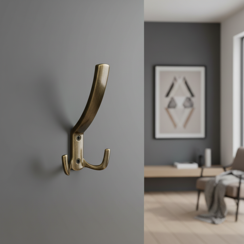 Als größeres Modell aus der VESNA-Serie verfügt er über einen dreifachen Haken, der ausreichend Platz zum Aufhängen von Mänteln, Jacken, Taschen, Handtüchern oder verschiedenen Accessoires bietet.