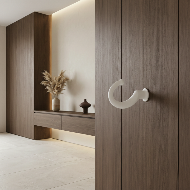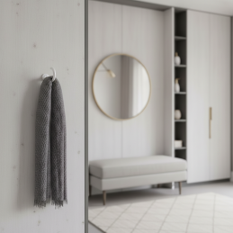 Eleganter Metall-Kleiderhaken ORSA in mattem Weiß ist ein dezentes und zeitloses Accessoire für moderne sowie klassische Innenräume. Dank der sanft abgerundeten Form wirkt er unauffällig, aber gleichzeitig praktisch – ideal zum Aufhängen von Kleidung, Handtaschen, Handtüchern oder Accessoires.