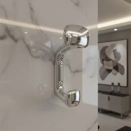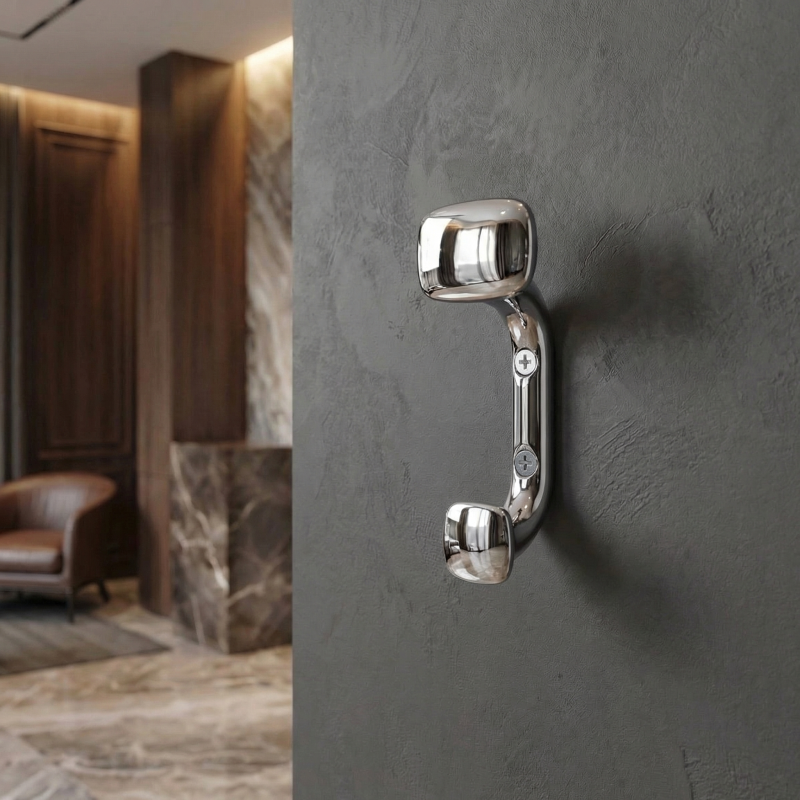 Der Haken SIMS in glänzendem Chrom ist eine praktische Lösung, die hilft, Ordnung zu halten und dem Interieur zugleich ein elegantes und modernes Detail verleiht.