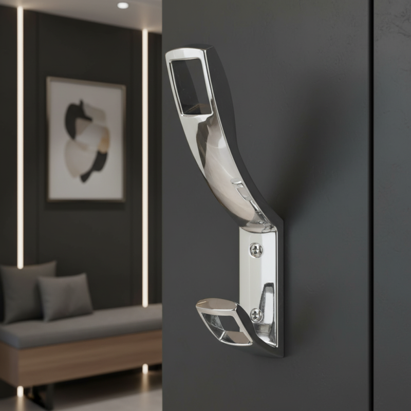Die Garderobe PAOLOS in glänzendem Chrom ist die ideale Wahl für alle, die ein elegantes, langlebiges und optisch markantes Accessoire suchen, das den modernen Charakter des Interieurs unterstreicht.