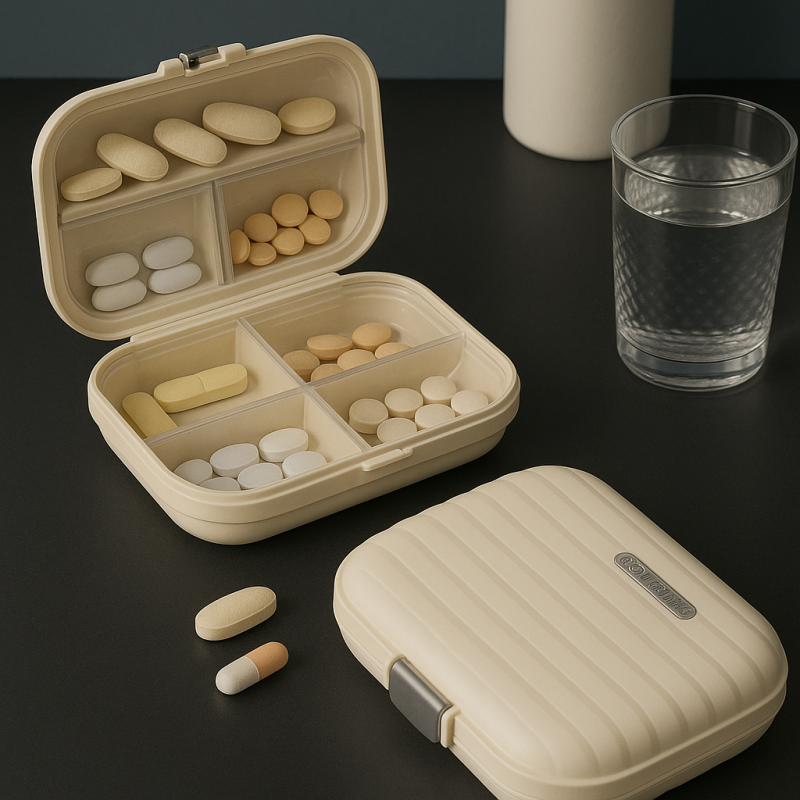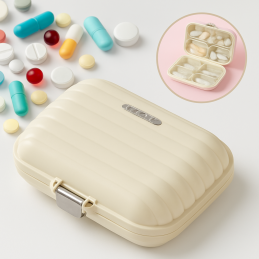 Eine Revolution in der Organisation Ihrer Medikamente - der exklusive WELL-Medizin-Organizer in eleganter Cremefarbe. Mit unserem Organizer müssen Sie sich keine Sorgen mehr über verstreute Pillen in Ihrer Handtasche oder zu Hause machen. Dieser praktische Medikamentenbehälter ist so konzipiert, dass er alle Ihre Bedürfnisse mit maximaler Effizienz und Stil erfüllt.