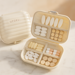 3. elegantes Design und Qualität: Das cremefarbene Design verleiht dem Organizer einen eleganten Look, der sich nahtlos in jede Umgebung einfügt. Er ist aus strapazierfähigen Materialien gefertigt, die eine lange Haltbarkeit gewährleisten und Ihre Medikamente vor Beschädigungen schützen.