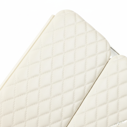 Die cremefarbene Ausführung und das dekorative Diamantmuster auf der Vorderseite verleihen dem Spiegel ein luxuriöses Aussehen. Zusammengeklappt wirkt er wie ein elegantes Etui und schützt gleichzeitig die Spiegel vor Beschädigungen.