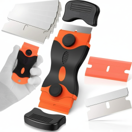 Die Packung enthält 5 scharfe Metallklingen für hartnäckigen Schmutz und 1 Kunststoffklinge für empfindliche Oberflächen. Die Klingen lassen sich einfach und schnell austauschen.