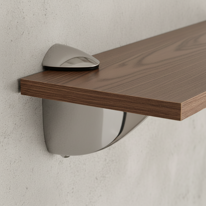 Regalhalter ist eine praktische und elegante Lösung zur Befestigung von Glas-, Holz- und Laminatregalen. Die moderne, abgerundete Form in Kombination mit hochwertiger Verarbeitung sorgt nicht nur für zuverlässige Funktionalität, sondern auch für ein sauberes und unauffälliges Erscheinungsbild im Innenraum.
