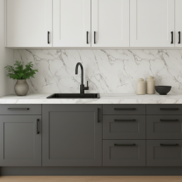 Verleihen Sie Ihrer Küche praktischen Schutz und ein elegantes Aussehen mit unserer Küchenrückwand aus hochwertiger Spanplatte, die mit strapazierfähigem Laminat beschichtet ist. Dieses Material zeichnet sich durch eine hohe Widerstandsfähigkeit gegen Beschädigungen, mechanische Belastungen und erhöhte Temperaturen aus, was eine lange Lebensdauer auch bei täglicher Nutzung garantiert.