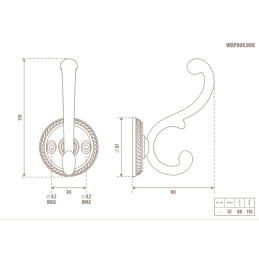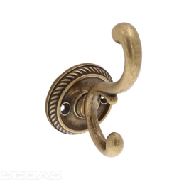 Der rustikale Kleiderhaken GALILEO in der Ausführung altmessing ist ein elegantes und funktionales Accessoire für klassische und rustikale Interieurs. Der reich verzierte doppelte Haken in Kombination mit einer dekorativen runden Rosette verleiht dem Haken einen traditionellen Charakter und einen hohen ästhetischen Wert.