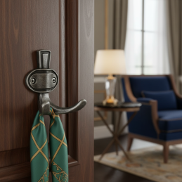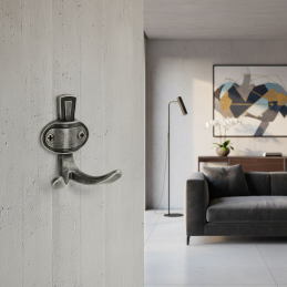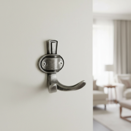 Der Haken VATERLO in alt-silberner Ausführung ist die ideale Wahl für Innenräume mit Liebe zum Detail, Tradition und zeitlosem Charakter.