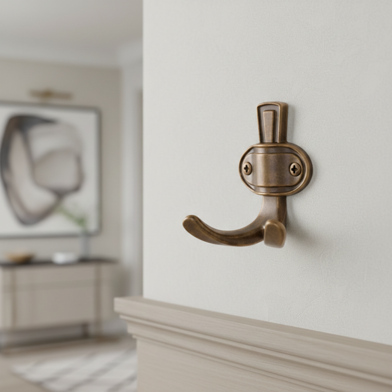 Der Haken VATERLO in Antik-Kupfer-Ausführung ist die ideale Wahl für Innenräume, in denen Wert auf traditionellen Stil und Detail gelegt wird.