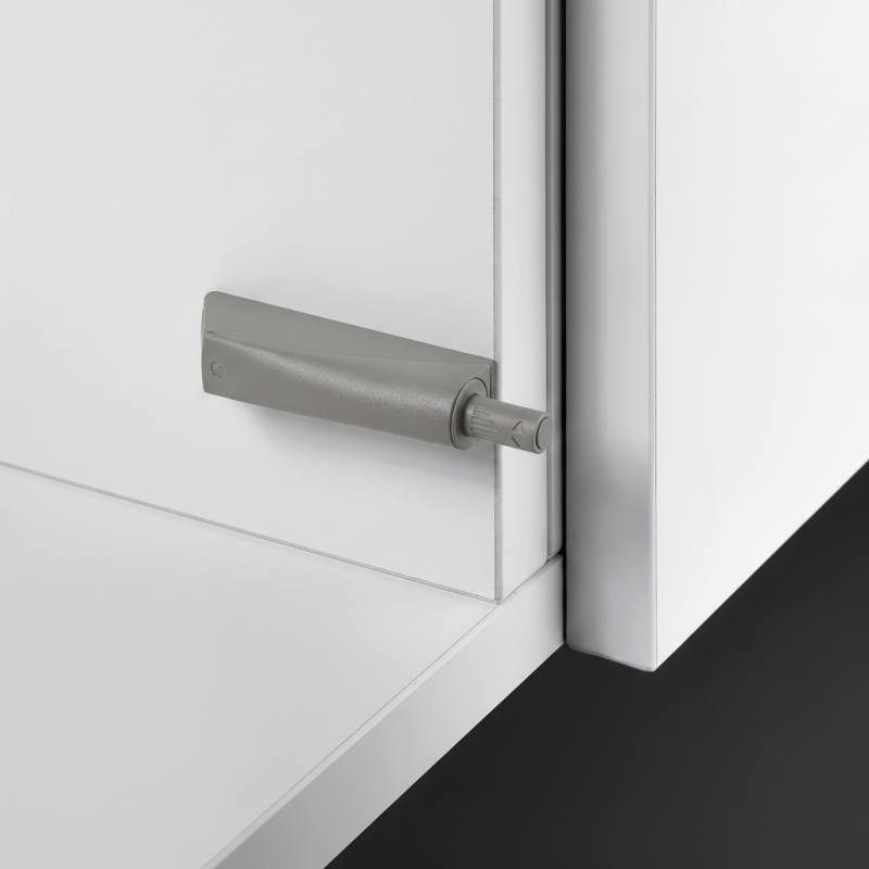 Praktischer Möbelkolben MOVE Mini ist die ideale Lösung für moderne grifflose Möbel. Dank des Push to Open Systems ermöglicht er das einfache Öffnen von Türen oder Schubladen durch leichtes Drücken auf die Front.