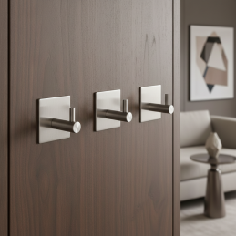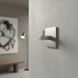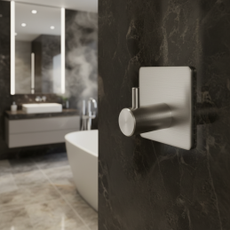 Moderner und praktischer selbstklebender Haken GINNA in der Ausführung Edelstahl ist die ideale Lösung dort, wo Sie nicht in die Wand bohren möchten. Er eignet sich besonders für das Badezimmer, die Küche oder für glatte Oberflächen im Innenbereich. Die elegante Edelstahlausführung verleiht dem Raum ein sauberes, zeitloses Aussehen und passt hervorragend zu moderner Ausstattung.