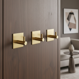 Einfach, elegant und äußerst praktisch ist der selbstklebende Haken GINNA in der Ausführung gebürstetes Gold die ideale Lösung für das Badezimmer, die Küche oder jeden Ort, an dem Sie nicht bohren möchten oder können. Die zeitlose gebürstete Goldoberfläche verleiht dem Raum ein luxuriöses Aussehen und bewahrt gleichzeitig den minimalistischen Stil.