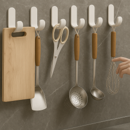 🔩 Einfache Installation – einfach die Schutzfolie abziehen und den Haken auf eine saubere, trockene Oberfläche kleben, ganz ohne Bohren.