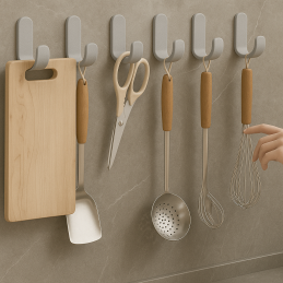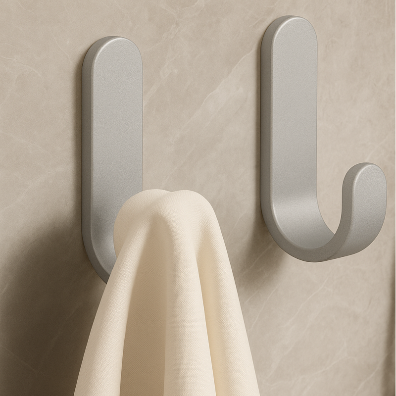 🔩 Einfache Installation – einfach die Schutzfolie abziehen und den Haken auf eine saubere, trockene Oberfläche kleben, ganz ohne Bohren.
