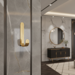 Eleganter selbstklebender Haken LAXO in moderner gebürsteter Gold-Optik ist ein stilvolles und praktisches Accessoire für Bad, Küche oder Flur. Dank der minimalistischen Form passt er in jedes Interieur und bietet einen funktionalen Platz zum Aufhängen von Handtüchern, Bademänteln oder Accessoires.