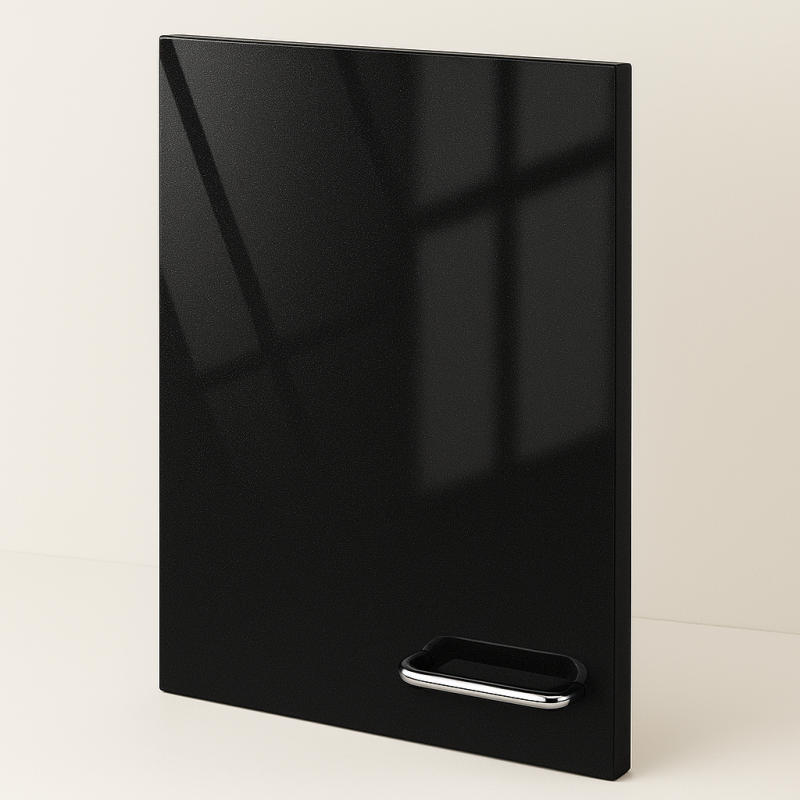 Erleben Sie die perfekte Verbindung von Luxus, Eleganz und Widerstandsfähigkeit mit MDF-Türen, beschichtet mit hochwertiger SENOSAN-Folie im Farbton Schwarz Metallic SCR 8427.