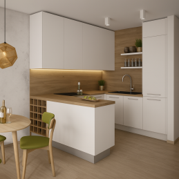 Entdecken Sie Eleganz in minimalistischer Form mit MDF-Fronten, beschichtet mit hochwertiger supermatter SENOSAN-Folie im Farbton Weiß Glänzend SCR 1982.
