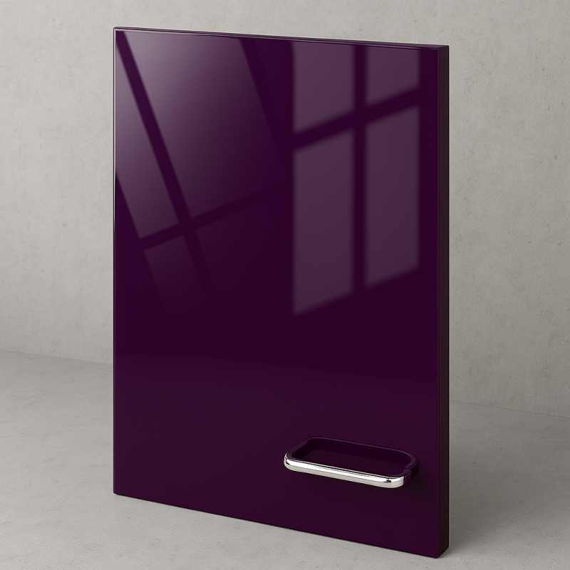 Beleben Sie Ihr Interieur mit MDF-Türen, beschichtet mit hochwertiger SENOSAN-Folie im einzigartigen Farbton Violett SCR 4548. Dieses ausdrucksstarke und moderne Dekor mit Hochglanz verleiht Ihrer Küche, Ihrem Bad oder Ihren Möbeln einen originellen Charakter und einen Hauch von Luxus.