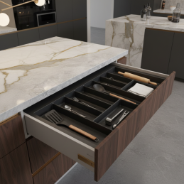 Es reicht, das Innenmaß der Schublade auszumessen und den Besteckkasten so anzupassen, dass er perfekt passt.