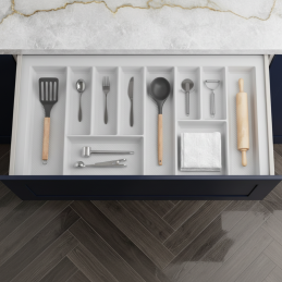 Messen Sie einfach das Innenmaß der Schublade und passen Sie den Besteckkasten so an, dass er perfekt passt.