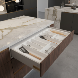 Das Besteckkasten CRISTALL ist ein praktischer Organizer für Besteck und Küchenutensilien für die Schublade. Dank der rutschfesten Oberfläche bleibt der Inhalt stabil an seinem Platz und das elegante weiße matte Design wirkt modern und sauber in jeder Küche.