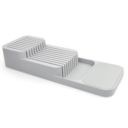 Dank spezieller Rillen ermöglicht er die Aufbewahrung mehrerer Messer unterschiedlicher Größen. Das moderne Design und die kompakten Maße sorgen dafür, dass der Halter nicht unnötig viel Platz einnimmt und in die meisten Standard-Küchenschubladen passt.