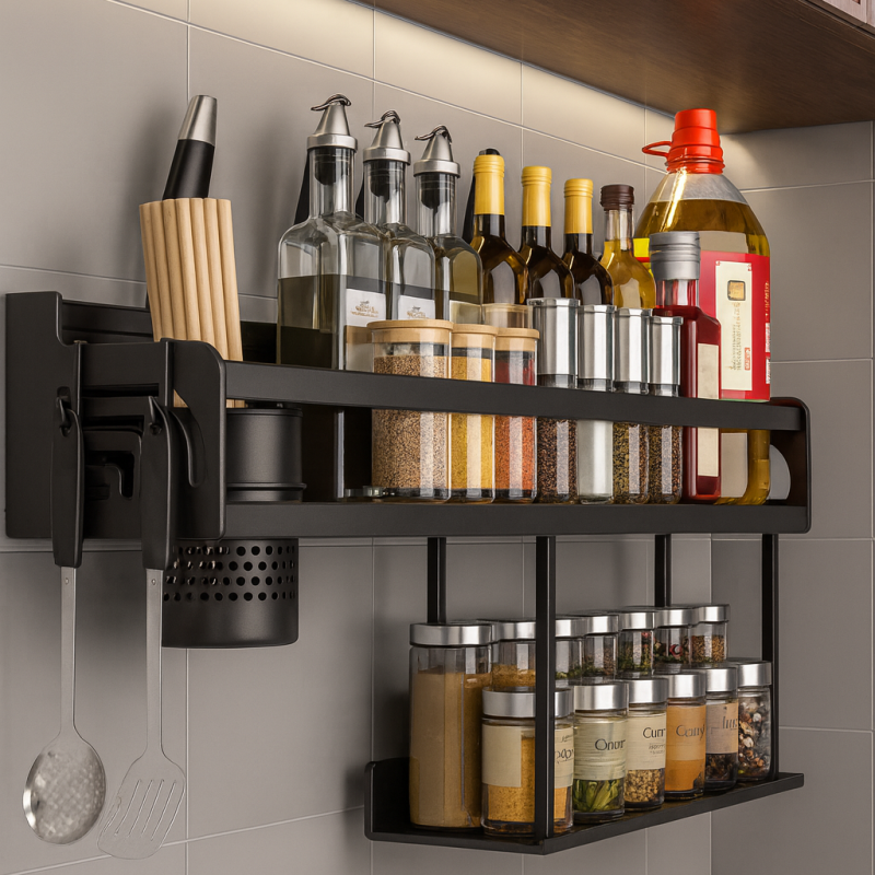3-in-1-Funktionalität – Gewürze, Messer und Besteck an einem Ort.