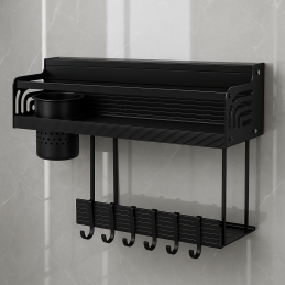 Lieferumfang: Regal, abnehmbarer Besteckhalter, 10 Haken, Montagematerial (selbstklebende Unterlagen + Schrauben)
