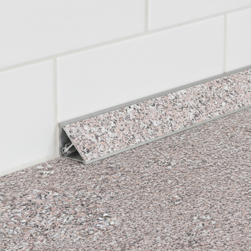 Sie besteht aus zwei Teilen – der untere Teil wird verschraubt oder verklebt auf der Arbeitsplatte befestigt und der obere anschließend eingeklickt in den unteren Teil. So entsteht ein fester, präziser und ästhetisch einheitlicher Abschluss im gleichen Dekor wie die Arbeitsplatte.