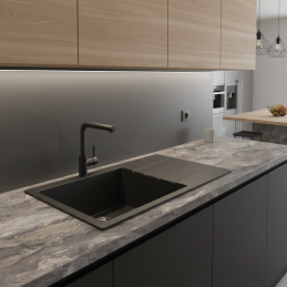 Dank ihres dezenten, aber luxuriösen Aussehens ist sie die ideale Wahl für Küchen, Bäder, Arbeitsbereiche oder Designmöbel-Sets. Die zuverlässige Spanplatte mit EGGER-Laminatoberfläche garantiert eine lange Lebensdauer und Beständigkeit gegen Abrieb, Feuchtigkeit, Hitze und mechanische Beschädigungen.